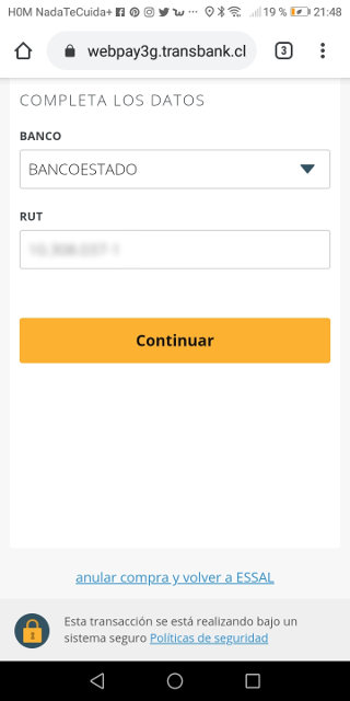 Seleccione luego la instirución financiera, en este caso Bancoestado.